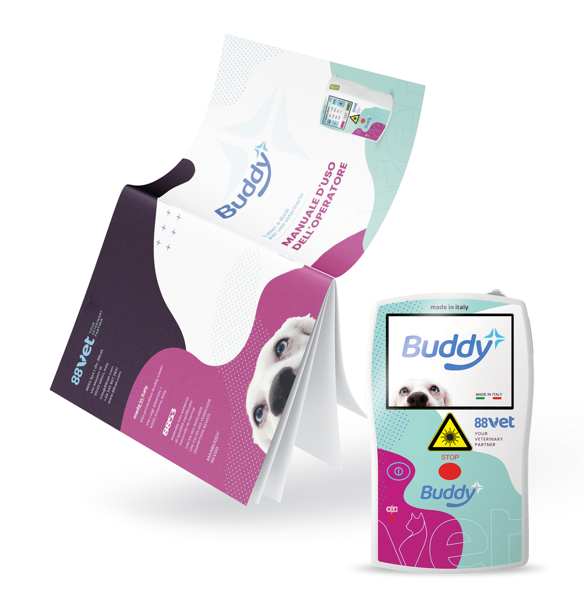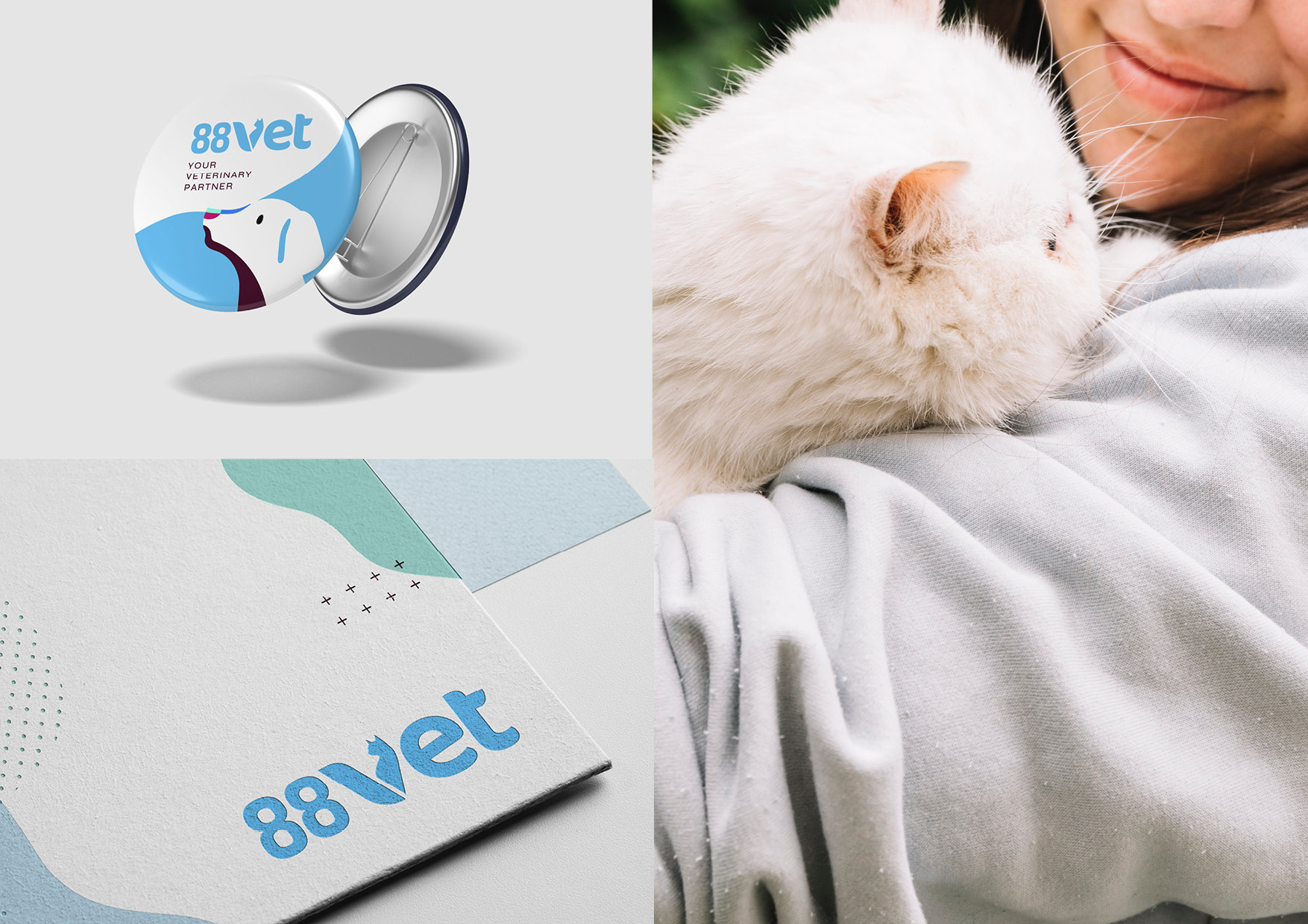 Il design compatto e la comunicazione visiva empatica riflettono la missione di 88VET: unire tecnologia e cura per il benessere animale. Il progetto include logo, visual, label e materiali editoriali dal tono rassicurante e professionale.